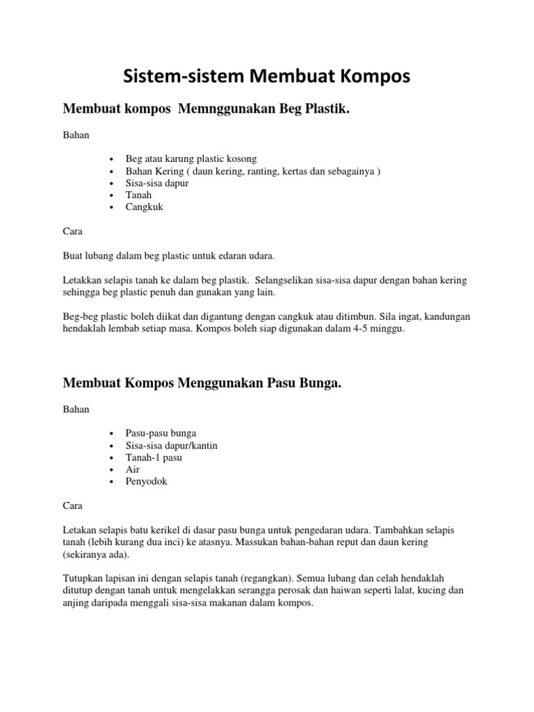 Kompos dihasilkan daripada sisa dapur dan tumbuhan. Sesuai untuk sesiapa yang baru sahaja mula belajar bertani. Cara Mudah Membuat Tanah Kompos Editor HAMIDIsP Published 1232018 021400 PM Kompos adalah baja organik yang amat sesuai digunakan untuk kebun kerana.